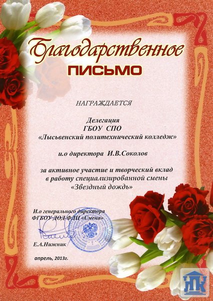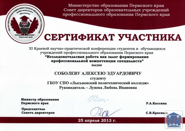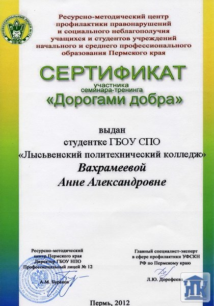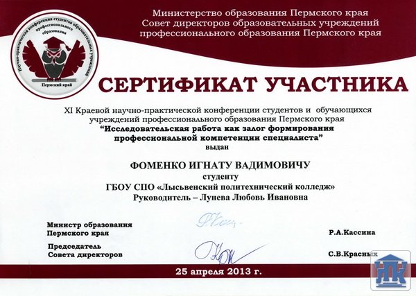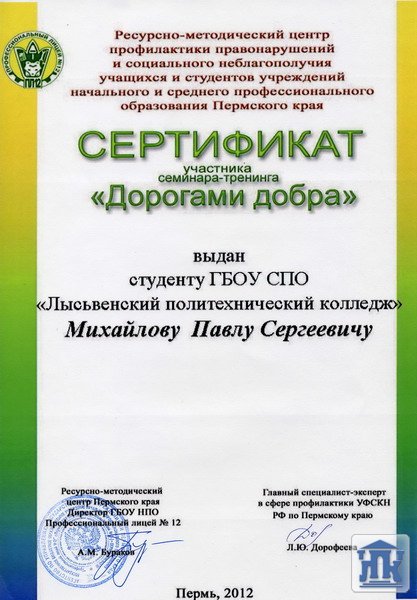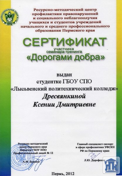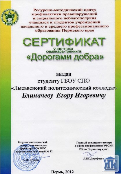 Пермский край, г. Лысьва, ул. Мира, д. 45, тел.: 8(34249) 3-79-70, доб. 205, 8(34249) 3-79-50, доб. 215, e-mail: gbpou-lpk@lpk.permkrai.ru