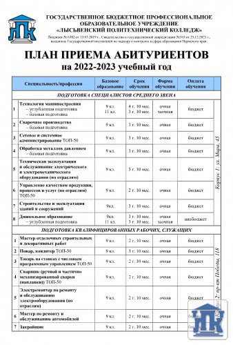 НАШ АДРЕС: 618900, Пермский край, г. Лысьва, корпус 1: ул. Мира, 45, тел.: (34 249) 3-79-50, доб. 215 – приемная директора, корпус 2: пр-кт Победы, 118, тел.: (34 249) 3-79-70, доб. 205 – приемная директора.