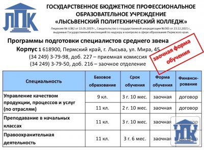 13.00 – корпус 1 (адрес: ул. Мира, 45), для следующих специальностей:
