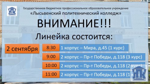 Внимание, сборы для студентов 1 курса состоятся 30 августа.