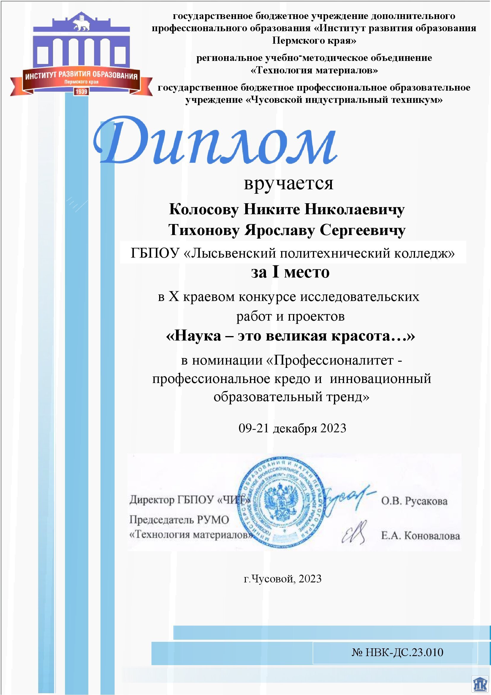 Министерство образования и науки Пермского края"Лысьвенский политехнический колледж" |