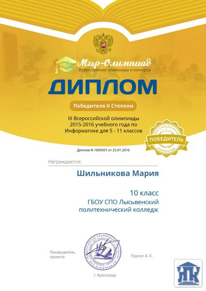 Всероссийская олимпиада по Информатике 25 января были подведены итоги III Всероссийской олимпиады по Информатике для 5-11 классов, проводимой на портале «Мир олимпиад» в 2015-2016 учебном году