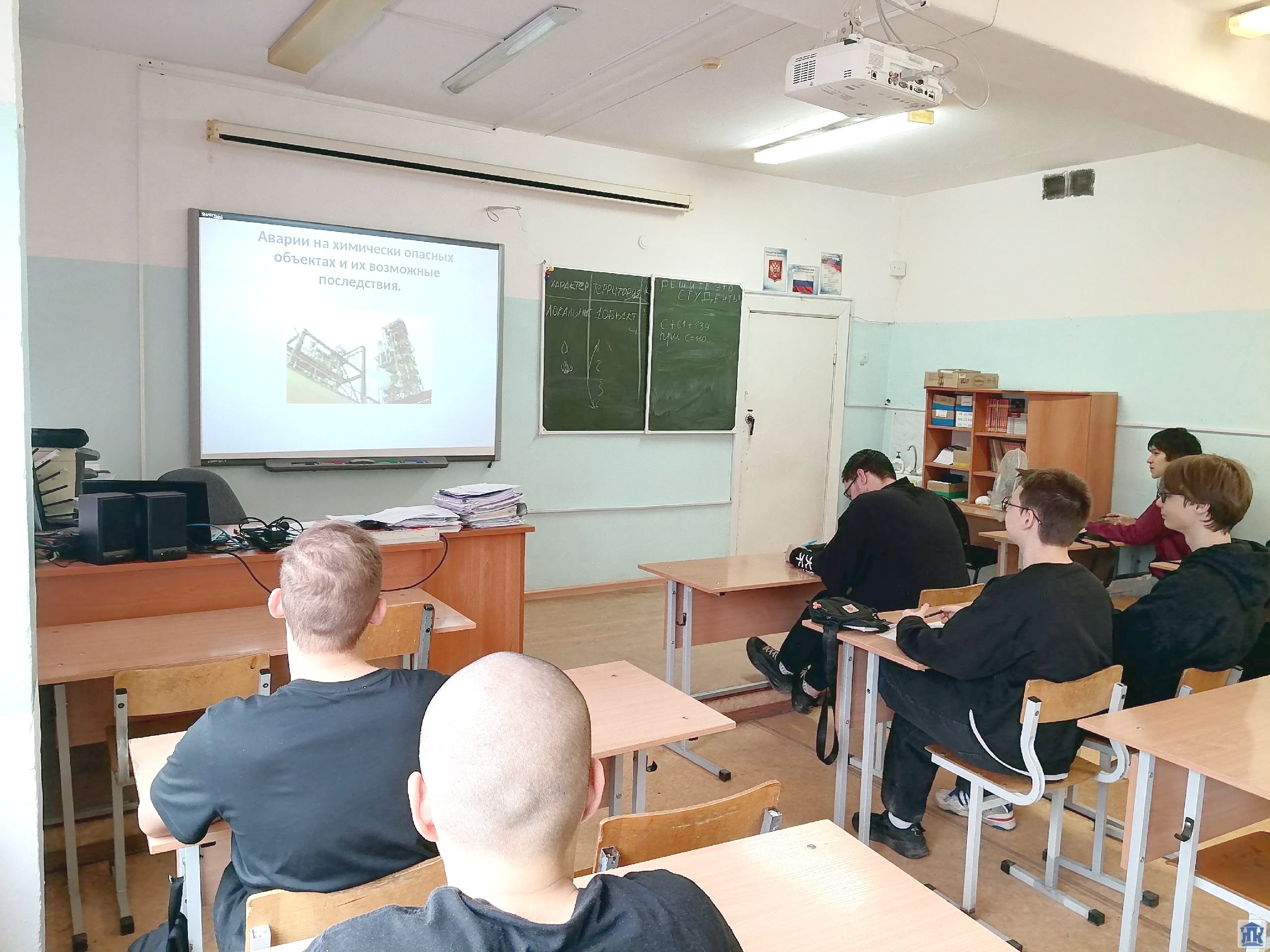 В рамках мероприятия «Месячник гражданской обороны» со студентами 1 и 2 курсов были рассмотрены темы: «Аварии на химически опасных производствах», «Аварии на радиационно-опасных производствах», «Средства индивидуальной защиты», «Аварии на пожароопасных и взрывоопасных производствах», «Первичные средства пожаротушения»
