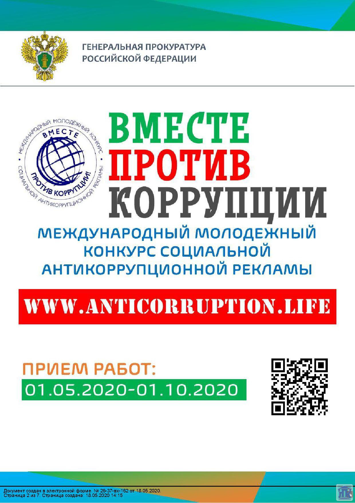 Уважаемые студенты, приглашаем вас принять участие в Международном молодежном конкурсе социальной антикоррупционной рекламы «Вместе против коррупции»