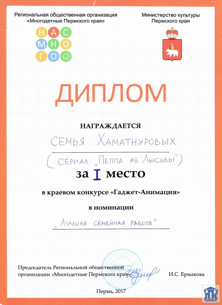 Поздравляем студента 1 курса Данила Хаматнурова (группа 14-17-ЭО) с успешным участием в краевом мероприятии! Семья Хаматнуровых победила в краевом конкурсе"Гаджет-Анимация"