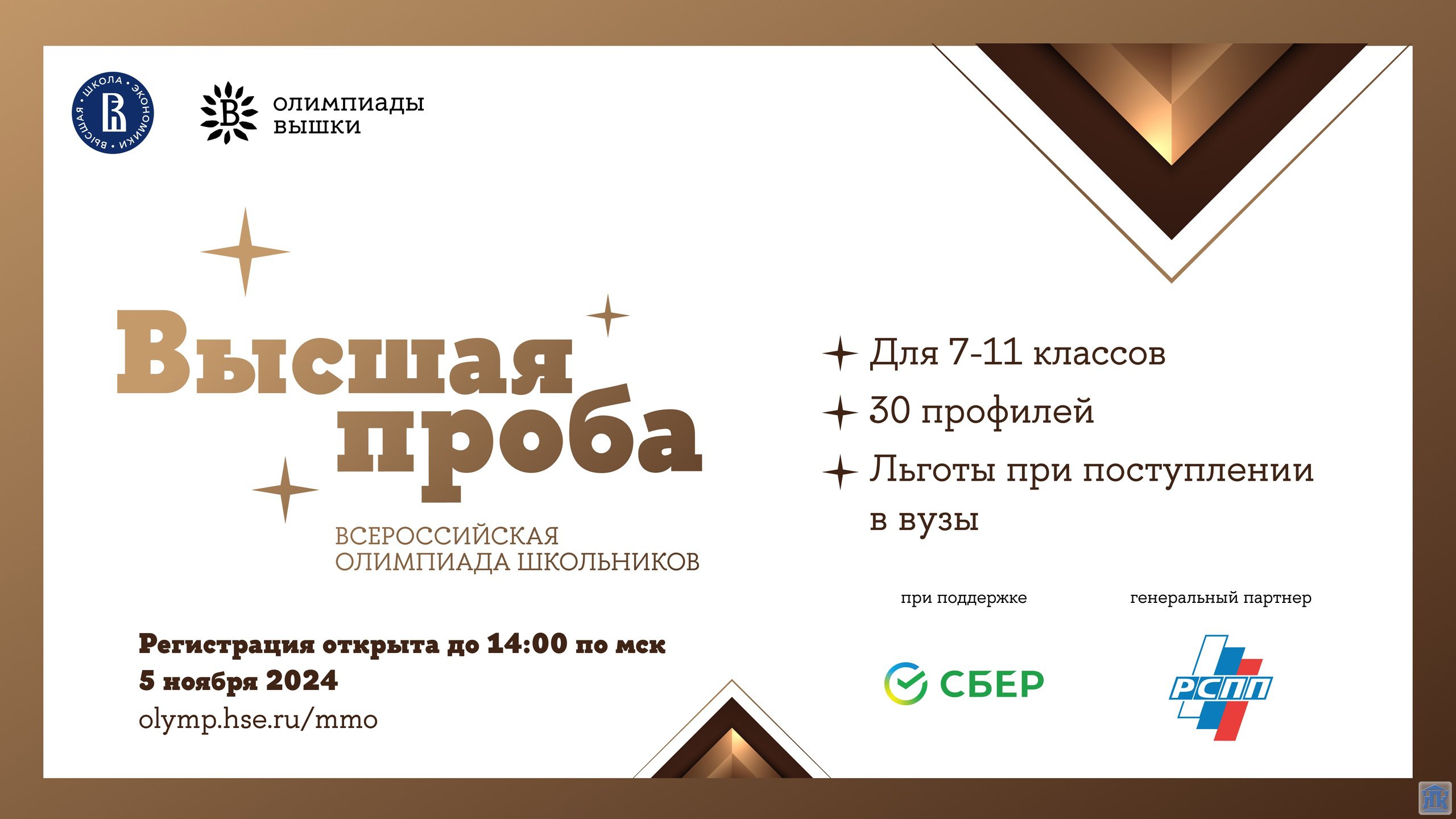 К участию в Олимпиаде приглашаются обучающие общеобразовательных организаций 7-11 классов и студенты профессиональных образовательных организаций. Олимпиада пройдет в два этапа: первый (отборочный) этап в дистанционном формате – в ноябре 2024, второй (заключительный) этап – в очном формате в период с 6 по 17 февраля 2025 г.