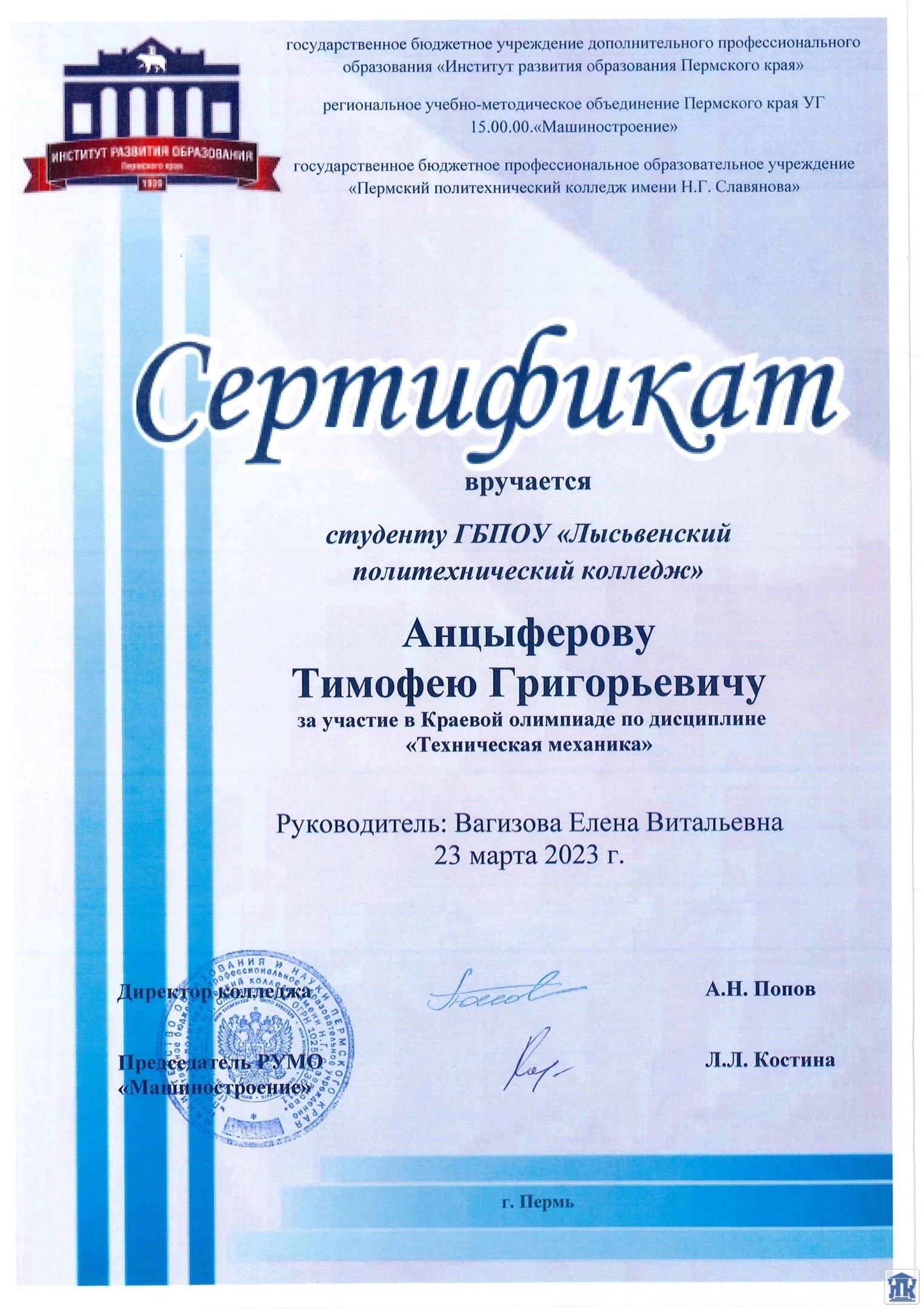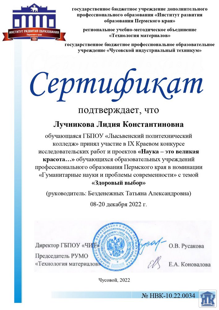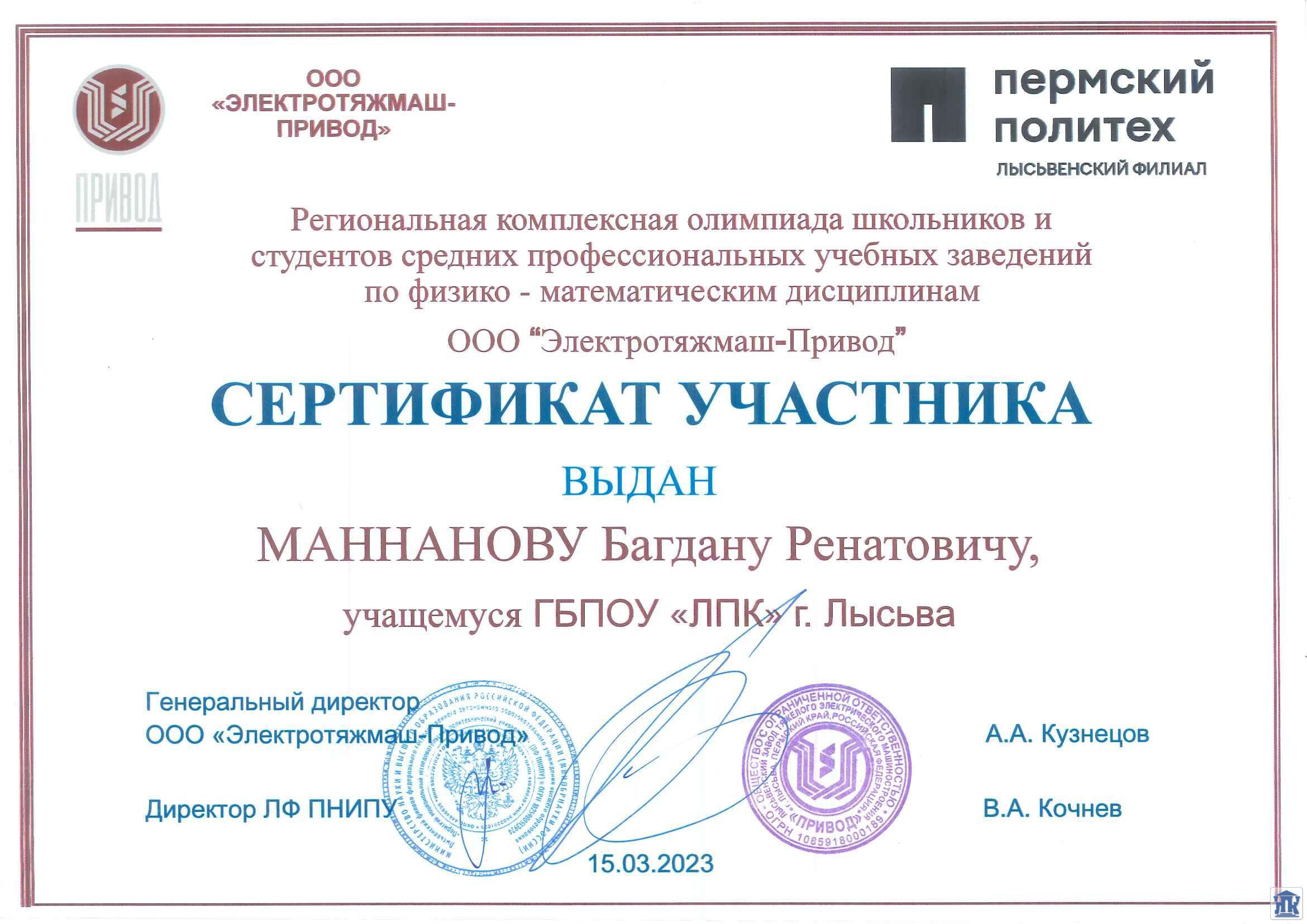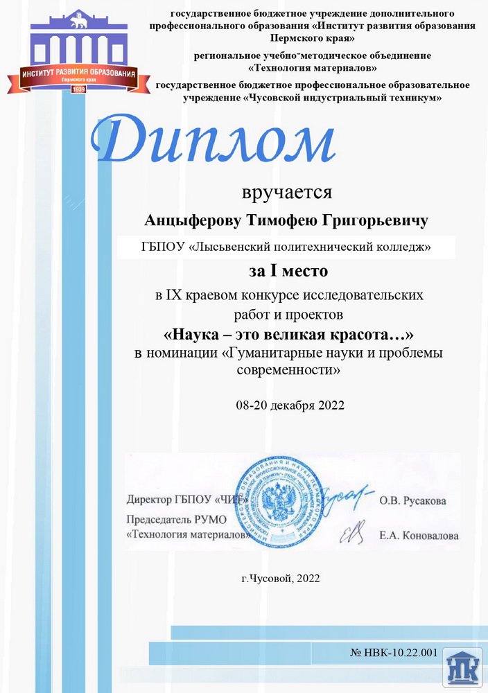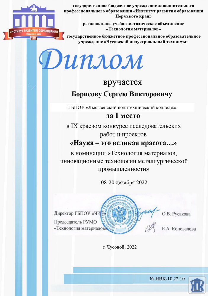 Пермский край, г. Лысьва, ул. Мира, д. 45, тел.: 8(34249) 3-79-70, доб. 205, 8(34249) 3-79-50, доб. 215, e-mail: gbpou-lpk@lpk.permkrai.ru