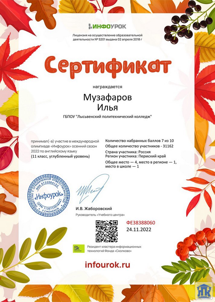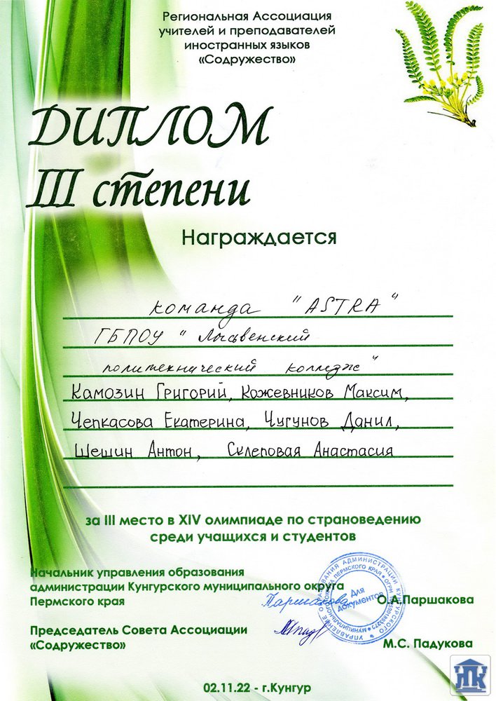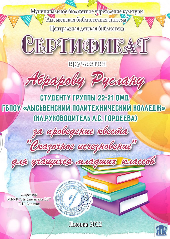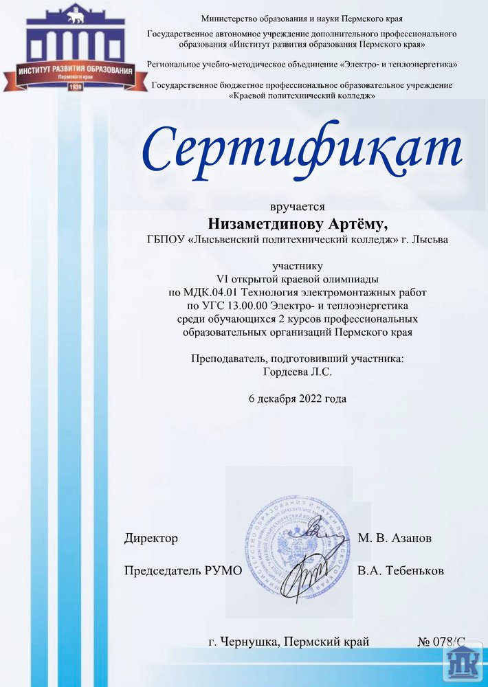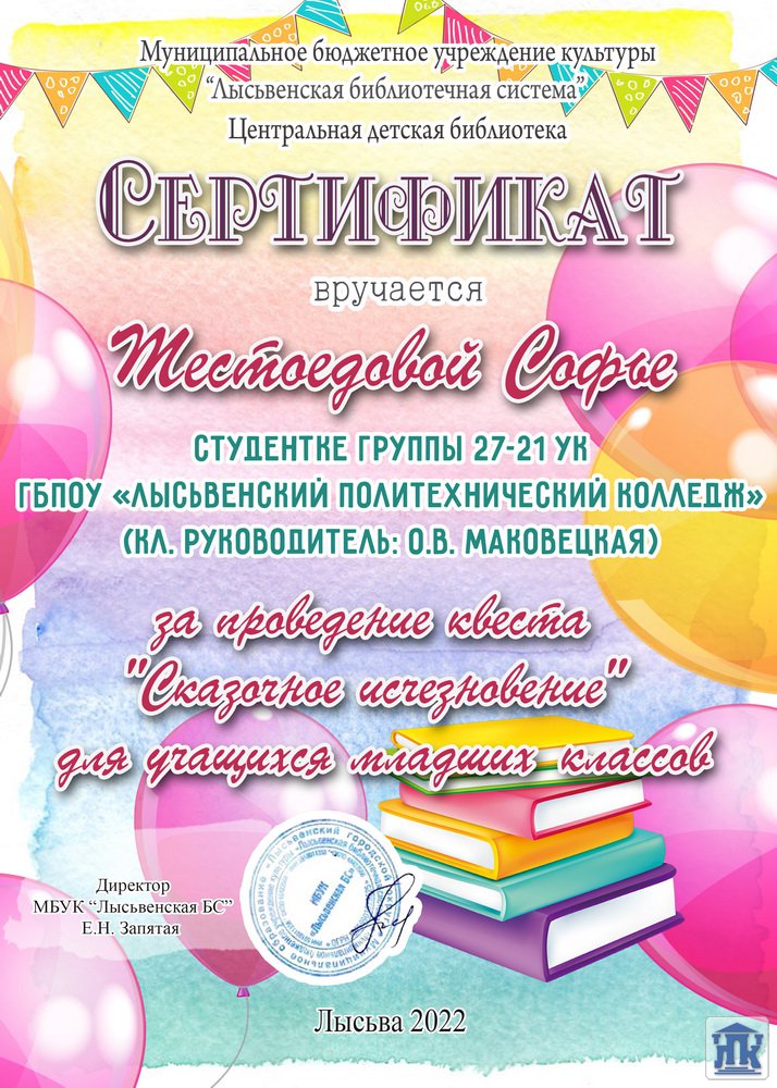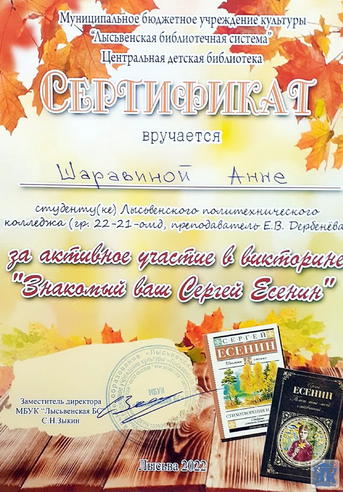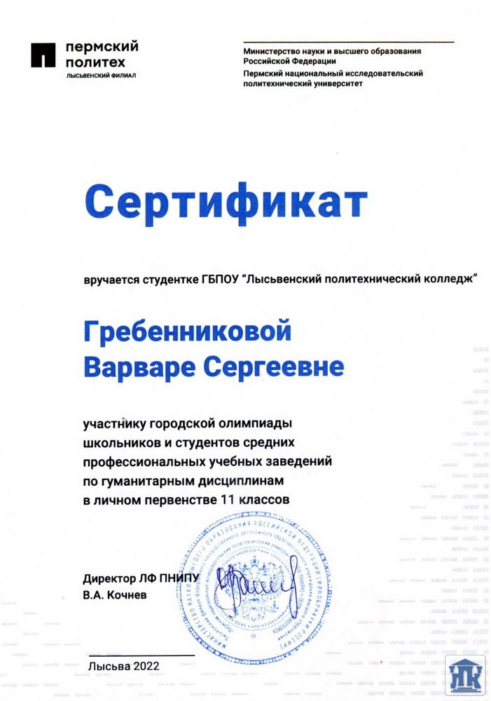 Пермский край, г. Лысьва, ул. Мира, д. 45, тел.: 8(34249) 3-79-70, доб. 205, 8(34249) 3-79-50, доб. 215, e-mail: gbpou-lpk@lpk.permkrai.ru