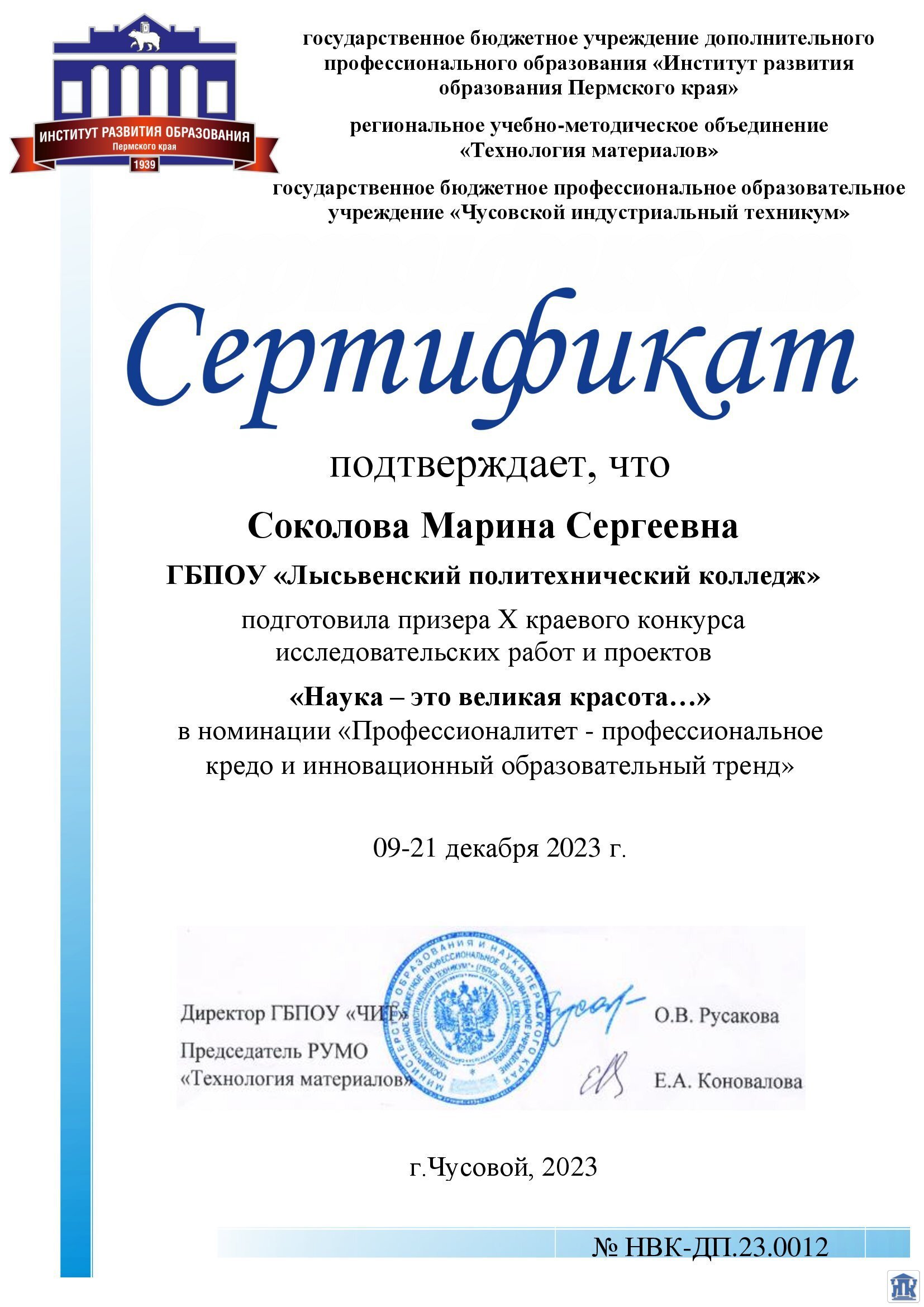Пермский край, г. Лысьва, ул. Мира, д. 45, тел.: 8(34249) 3-79-70, доб. 205, 8(34249) 3-79-50, доб. 215, e-mail: gbpou-lpk@lpk.permkrai.ru