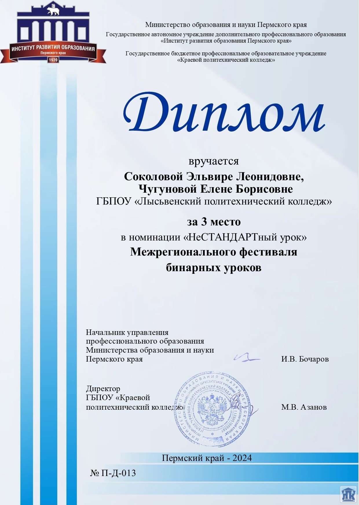 Пермский край, г. Лысьва, ул. Мира, д. 45, тел.: 8(34249) 3-79-70, доб. 205, 8(34249) 3-79-50, доб. 215, e-mail: gbpou-lpk@lpk.permkrai.ru