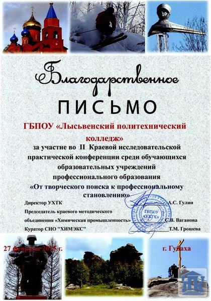 27 февраля в ГБПОУ «Уральский химико-технологический колледж» в г.Губаха состоялась краевая исследовательская практическая конференция «От творческого поиска к профессиональному становлению».