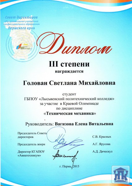 Пермский край, г. Лысьва, ул. Мира, д. 45, тел.: 8(34249) 3-79-70, доб. 205, 8(34249) 3-79-50, доб. 215, e-mail: gbpou-lpk@lpk.permkrai.ru