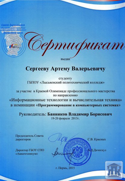Пермский край, г. Лысьва, ул. Мира, д. 45, тел.: 8(34249) 3-79-70, доб. 205, 8(34249) 3-79-50, доб. 215, e-mail: gbpou-lpk@lpk.permkrai.ru