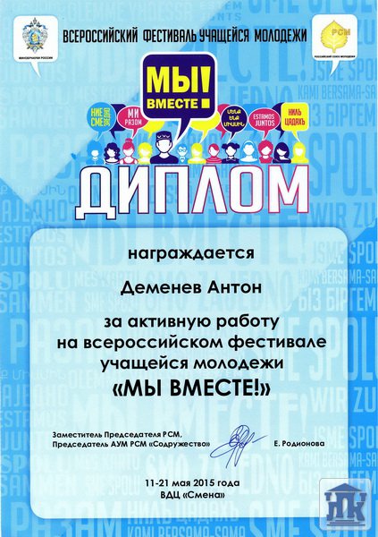 Деменев Антон (12-14-ОМД) принимал участие в молодежном форуме «Мы вместе». Большое спасибо Шатову Матвею (21-АВ), Деменеву Антону (12-14-ОМД), Швецовой Елене (15-14-ЭК) за активное участие в мероприятиях! Будем надеяться, что это не последняя наша поездка в лагерь.
