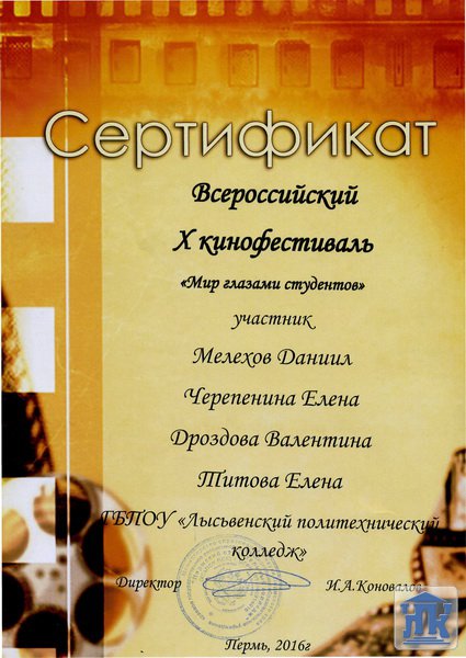 2016 год объявлен Годом отечественного кино, и этому посвящено много мероприятий городского и краевого уровней. Традиционно Пермский строительный колледж пригласил нас 26 февраля для участия в X Всероссийском кинофестивале «Мир глазами студентов», и тематика была заявлена соответствующая «Год Отечественного кинематографа». Студентам было предложено снять ремейки на отечественные фильмы и выполнить постановочное фото на кадры из них.