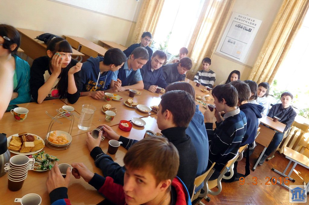 9 марта за праздничным столом в группе 18-15-КС состоялся классный час, посвящённый прошедшим праздникам «23 + 8». Благодарю актив группы за хорошую организацию чаепития и трогательные поздравления с весенним праздником 8 Марта. Весёлый конкурс, непринуждённая обстановка, яркое мартовское солнышко создали душевную атмосферу студенческих посиделок.