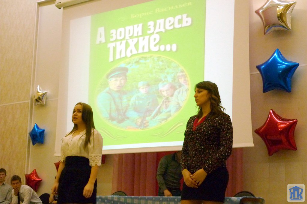 Обучающиеся 2 курса приготовили постановку по произведению Бориса Васильева «А зори здесь тихие…», читали выдержки из своих сочинений к этому произведению, стихотворения на тему «У войны не женское лицо». Студенты выступили на литературном уроке эмоционально, артистично, что не оставило зал равнодушным.