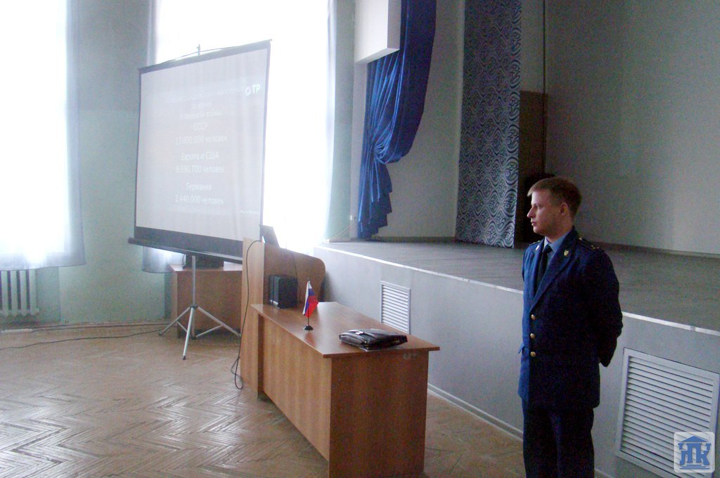 19 апреля в колледже состоялась встреча «Нюрнбергский процесс – репортаж из прошлого», посвященная 70-летию со дня начала Нюрнбергского процесса. Встречу провел помощник Лысьвенского городского прокурора Сычев Александр Владимирович. Присутствовали студенты групп 12-15-ОМД, 15-15-ПР, 17-15-УК, 16-15-ТМ.