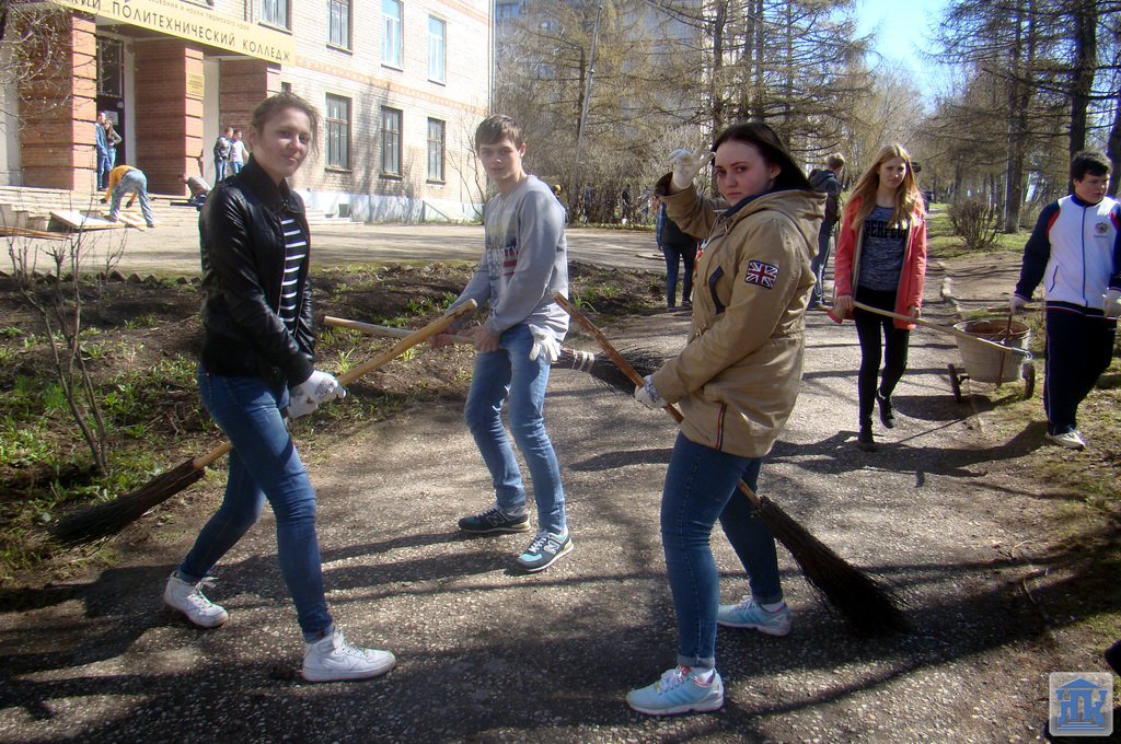 В течение апреля студенты с классными руководителями наводили порядок в колледже, а 26 и 27 апреля состоялся субботник на территории колледжа.