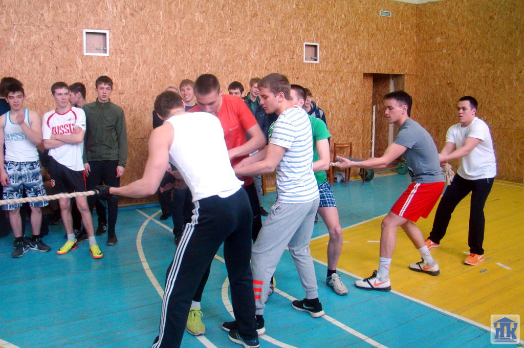 Но как выяснить, готовы ли наши студенты к военной службе? Ведь студент, прежде всего, должен быть спортивным, выносливым, отлично работать в команде. После торжественной части команды студентов продолжили мероприятие в спортивном зале и компьютерных классах. В компьютерных классах прошел теоретический тур, где студенты отвечали на вопросы по патриотическому воспитанию. В спортивном зале студентам в рамках второго этапа «Силовое многоборье» предстояло выяснить, кто же самый сильный и выносливый. Ребята прошли много испытаний, но самым зрелищным оказалось перетягивание каната. Такого накала страстей давно не было в спортивном зале. Выражаем благодарность Попову Виктору Витальевичу и Каляде Ивану Николаевичу за высокий уровень проведения спортивного этапа. Надеемся, что такой праздник станет традиционным!