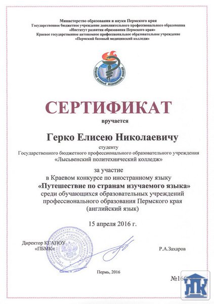 Пермский край, г. Лысьва, ул. Мира, д. 45, тел.: 8(34249) 3-79-70, доб. 205, 8(34249) 3-79-50, доб. 215, e-mail: gbpou-lpk@lpk.permkrai.ru