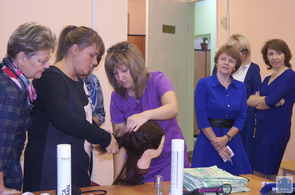 Студентки рассказали о новинках в парикмахерском искусстве, о правильном уходе за волосами. Педагоги посмотрели демонстрацию и отработку навыков моделирования причесок и укладок волос, самостоятельно плели косы, пробовали формировать жгуты на манекенах.