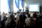 Студенты посмотрели кадры кинохроники и послушали рассказ Бориса Луткаева о тех тяжелых днях из жизни города.
