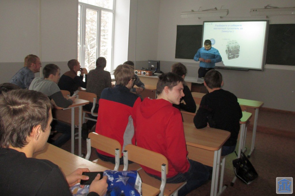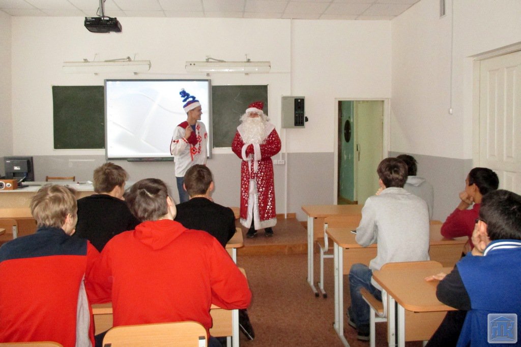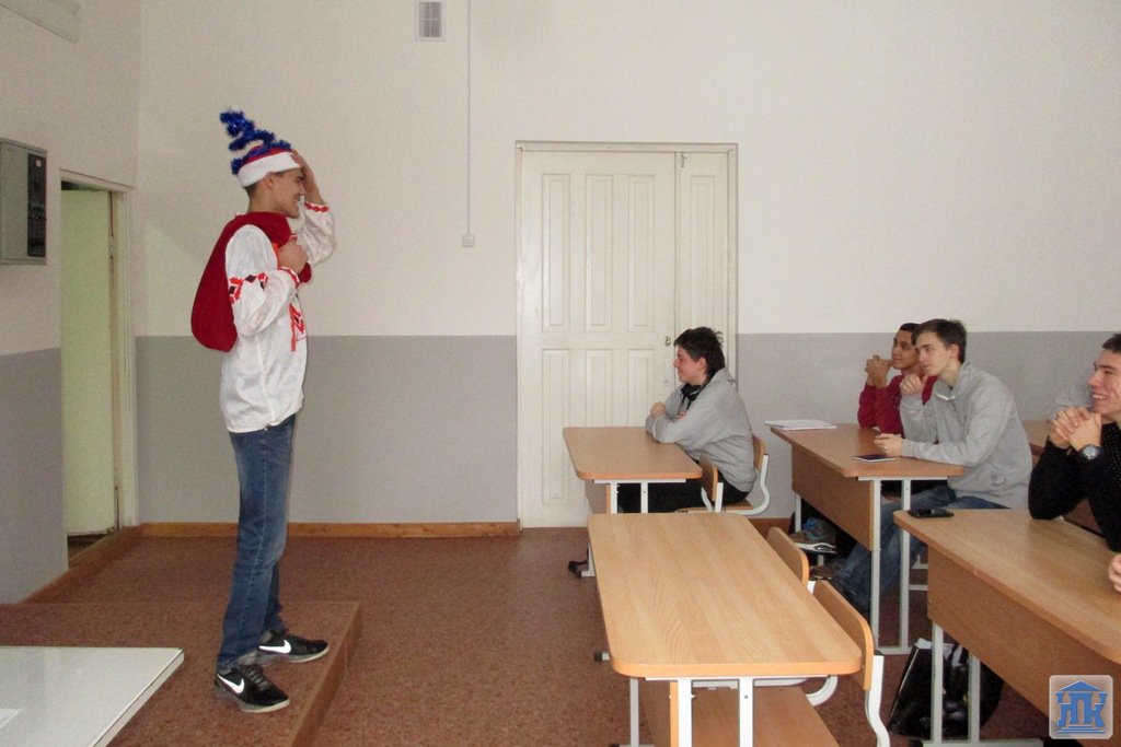 Накануне Нового года в группы автомобилистов и электриков заглянул Дед Мороз. И хотя групп было много:2-14-СЭМА,14-ЭО,11-АВ,21-АВ,23-ЭМ,34-ЭО,43-ЭМ, Дед Мороз не растерялся. Он не только поздравил студентов с наступающим праздником, предлагал загадки, но и задал несколько вопросов по изучаемой специальности. (Может быть, Дед Мороз сам подрабатывает электриком или ремонтирует автомобили?) Студенты ответили на все вопросы, получили заслуженные призы, а Дед Мороз пожелал лёгких зачётов и экзаменов, и, конечно, счастливого Нового года и весёлых каникул.