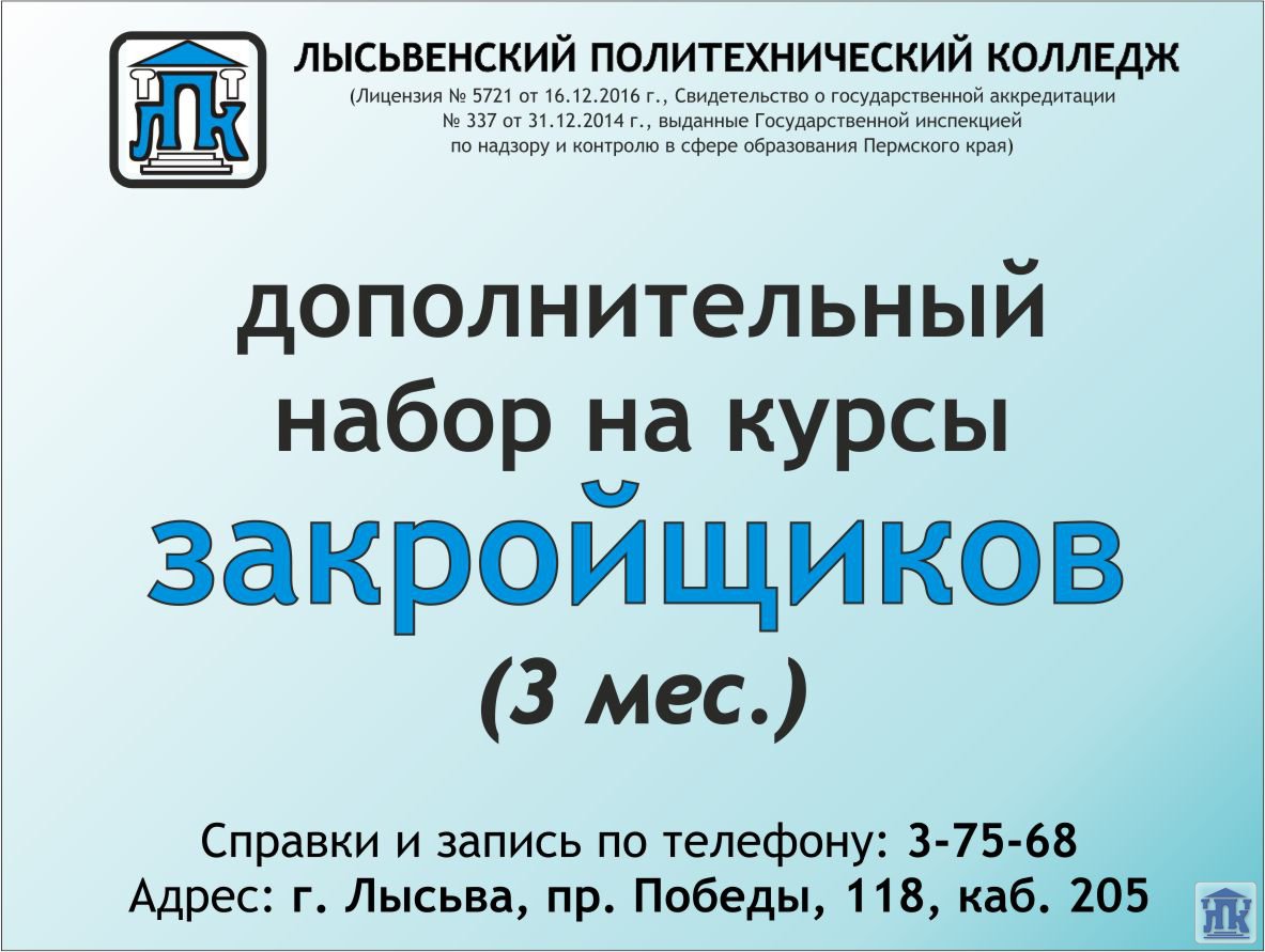 Государственное бюджетное профессиональное образовательное учреждениеПермский край, г. Лысьва, ул. Мира, д. 45, тел.: 8(34249) 3-79-70, доб. 205, 8(34249) 3-79-50, доб. 215, e-mail: gbpou-lpk@lpk.permkrai.ru |