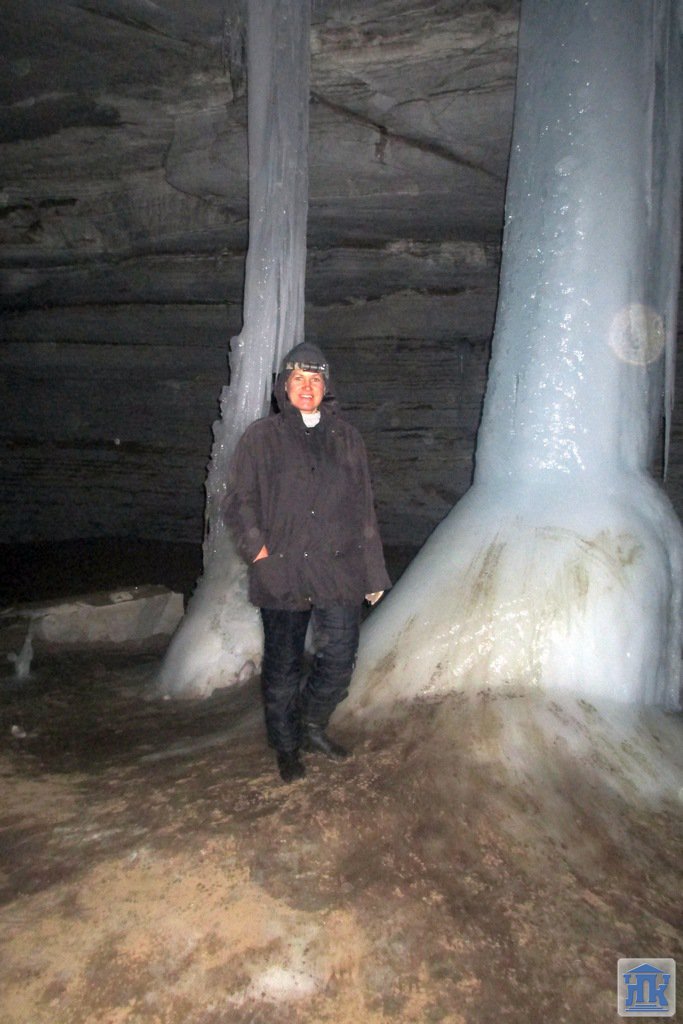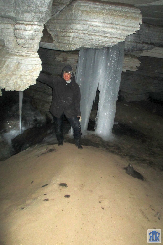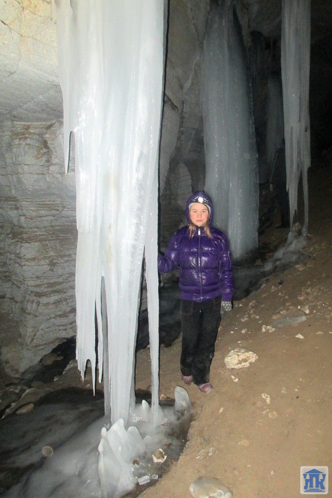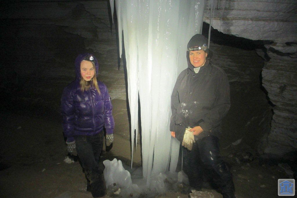 Зимой в пещере относительно чисто. Место очень многолюдное. Спуск в пещеру жуткий, покрыт ледяной коркой, для спуска требуется страховка. Но после спуска пещера встречает ледовым великолепием! Под ногами вода, вязкая глина, но усталости не чувствуется. Выбираться из пещеры оказалось намного легче.