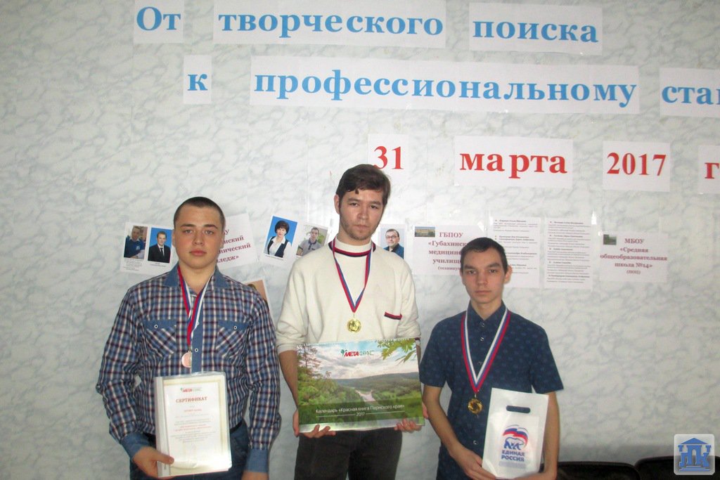 31 марта 2017 года студенты нашего колледжа очень успешно выступили на краевой исследовательской практической конференции «От творческого поиска к профессиональному становлению», которая проводилась в г. Губаха. 26 студентов представляли 22 учебные исследовательские работы. Успешных выступлений,творческих находок, самореализации пожелали выступающим организаторы конференции, социальный партнёр ПАО «Метафракс» на торжественном открытии этого мероприятия. Директор ГБПОУ «Уральский химико-технологический колледж» сказал добрые слова о нашем колледже, о высоком уровне проведения конкурса «Учительгода» в г. Лысьва, о дружбе наших учебных заведений.