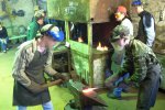 Далее, практический этап- четыре пары кузнецов приступили к выполнению «скобы строительной». Работа закипела в кузнице. Остальные студенты были зрителями и должны не только наблюдать процесс изготовления «скобы», а замечать нарушения техники безопасности в работе кузнецов. Для организации работы создана технологическая карта, в которой имелись «ошибки», т. е. намеренно выпущены три операции ковки и студенты – кузнецы должны это заметить и выполнить. И вот, наконец, завершение работы, последний штрих- термическая обработка «скобы» и сдача работы жюри. Победила команда «Дети Сварога»- гр.22-15-ОМД, второе место- «Кузнецы»- гр. 32-14-ОМД. Студенты оценили урок на высокие баллы, всем было интересно. В пожеланиях- проводить такие мероприятии чаще. Спасибо преподавателям за работу в жюри, за поддержку в качестве зрителей, студентам- особое спасибо за помощь в подготовке урока и активное участие.