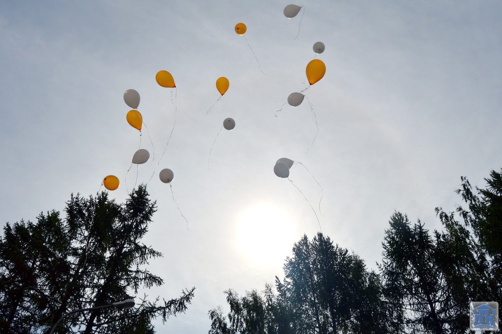 Студенты колледжа приняли участие во флешмобе и после минуты молчания в небо выпустили белые шары, которые призваны символизировать мир.