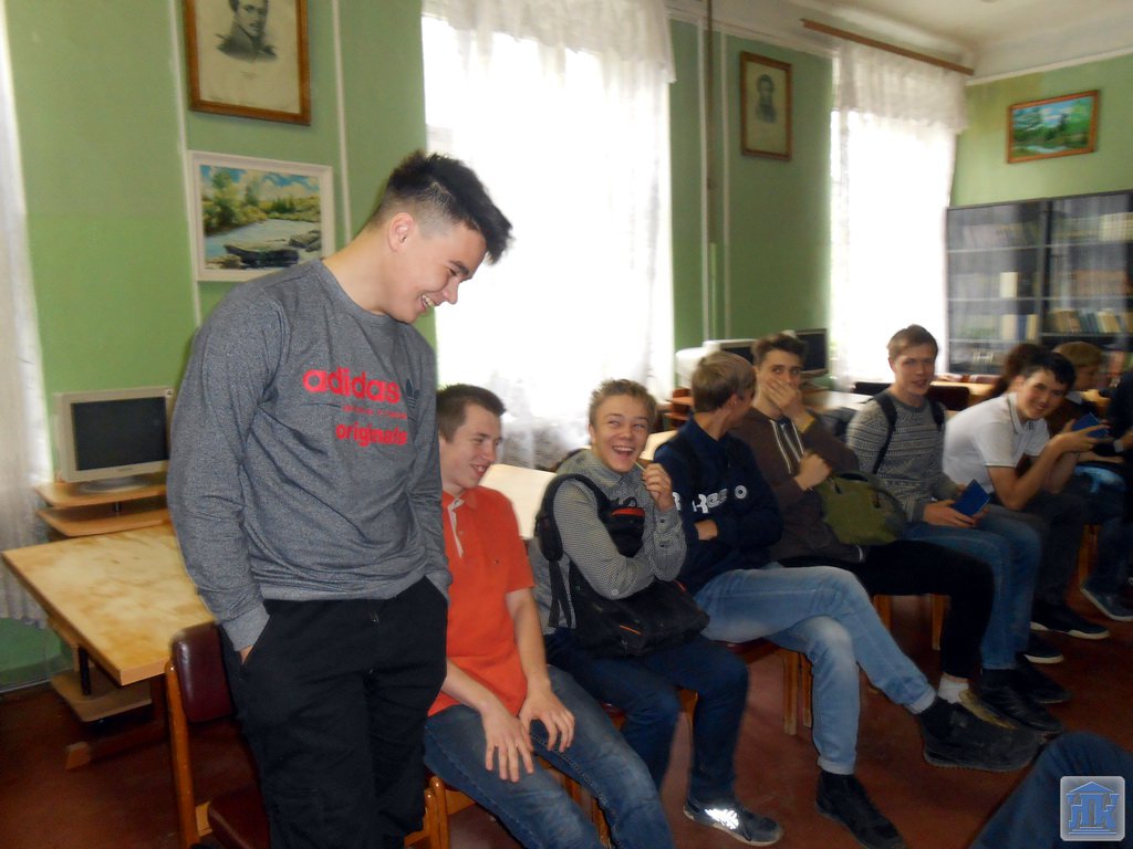 28 сентября в читальном зале библиотеки прошел классный час у группы 29-16-СВ с названием «А у нас сегодня суд». Ребята обвинялись в неумении дружить, помогать друг другу, в неумении объяснить, зачем они пришли в колледж, и многом другом. В роли обвинителя выступила Черепенина Е.В., зав.библиотекой.