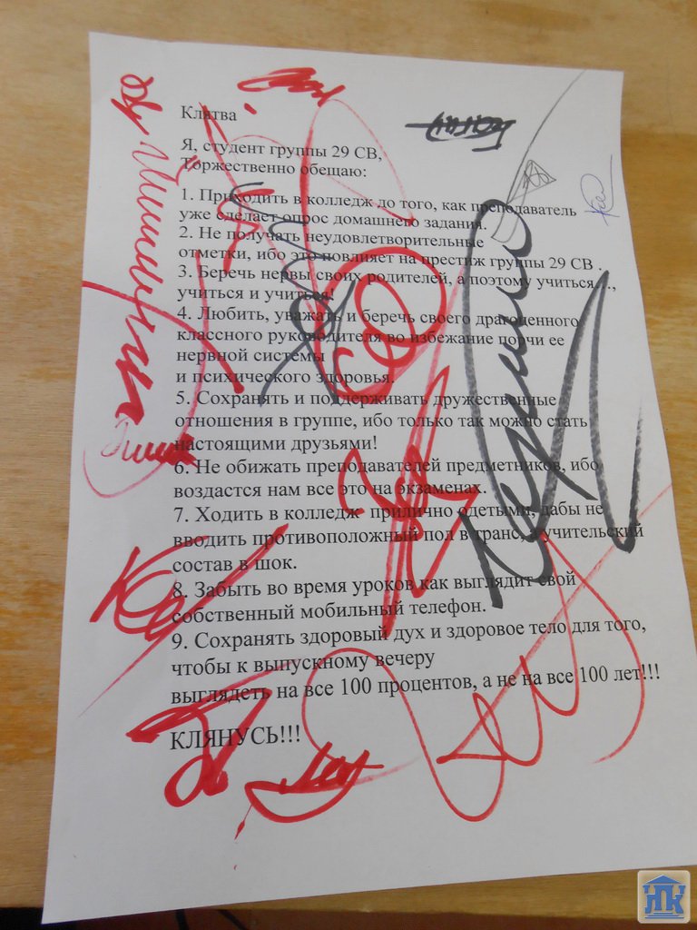 В заключении оглашается приговор. Суд постановил: оправдать группу 29-16-СВ, подписать клятву и позволить всем учиться в составе 21 человека.