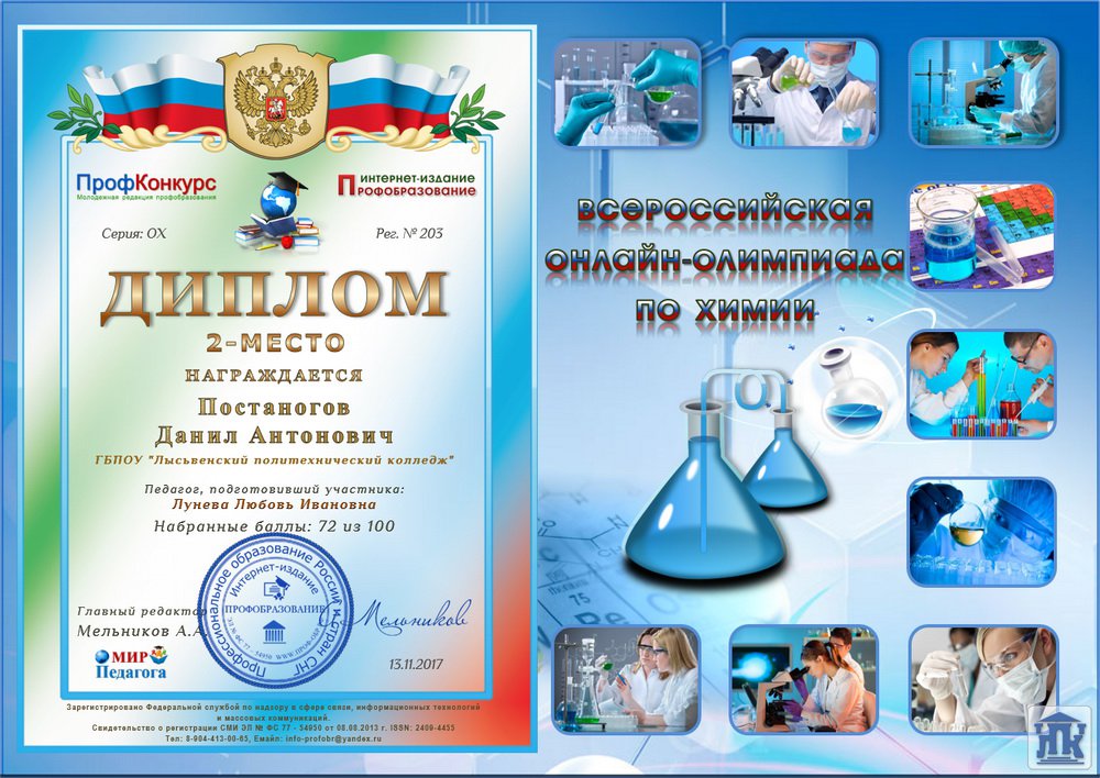 Подведены итоги всероссийской олимпиады по химии интернет-издания «Профобразование».