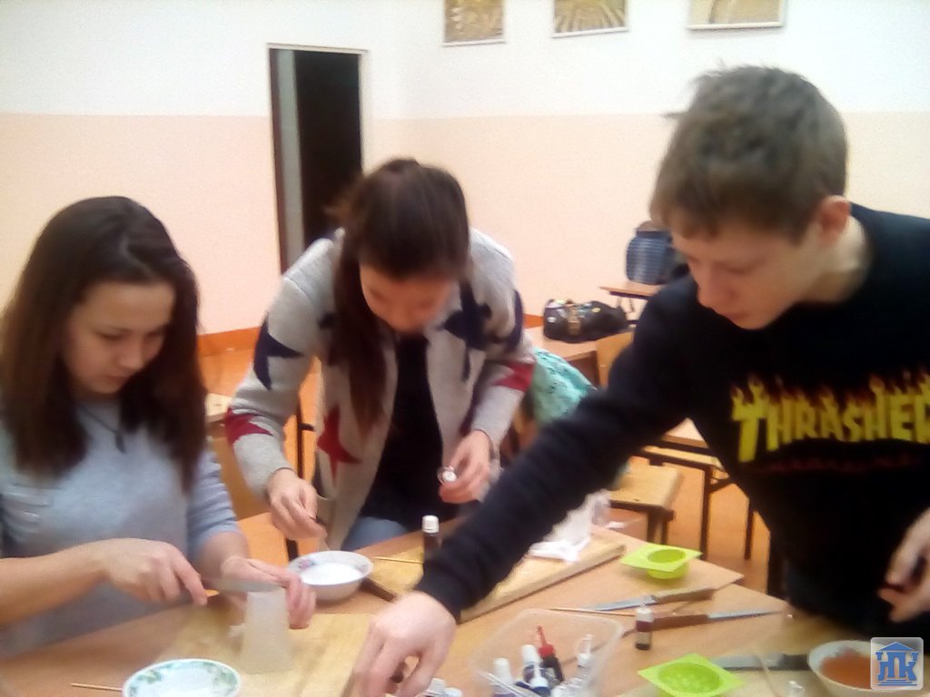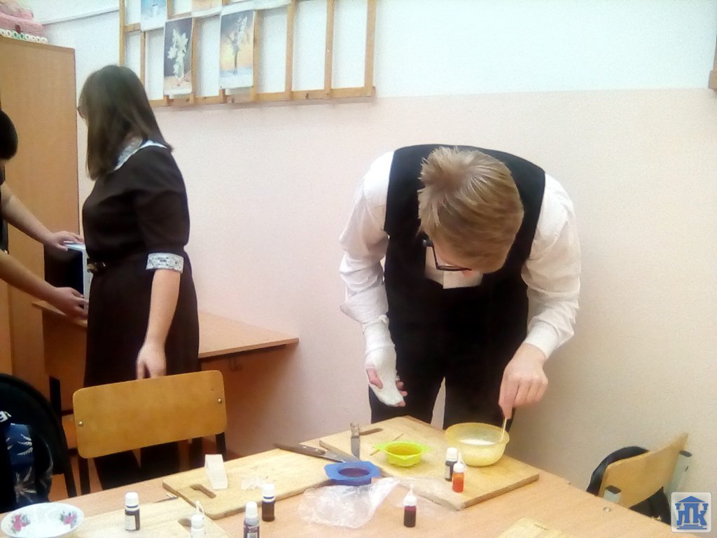 24 ноября в канун праздника «День матери» в группе 109-17-ПВ прошел мастер-класс с обучающимися «Сувенир для мамы». В последнее время такое направление рукоделия как мыловарение получило большой творческий интерес. Студентам было предложено сотворить свое собственное уникальное мыло, чтоб порадовать самого родного и близкого человека – МАМУ. Ребятам было рассказано ,из чего делается мыло, как придать мылу цвет, какие бывают полезные добавки, как мыло ароматизируется, какое воздействие оказывает на кожу.