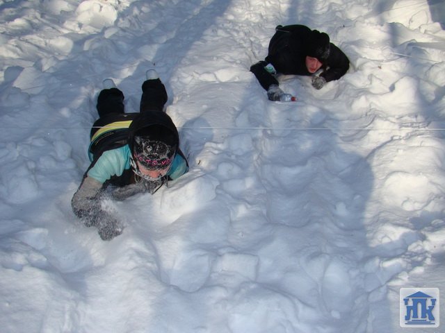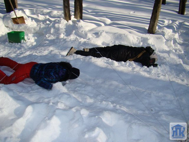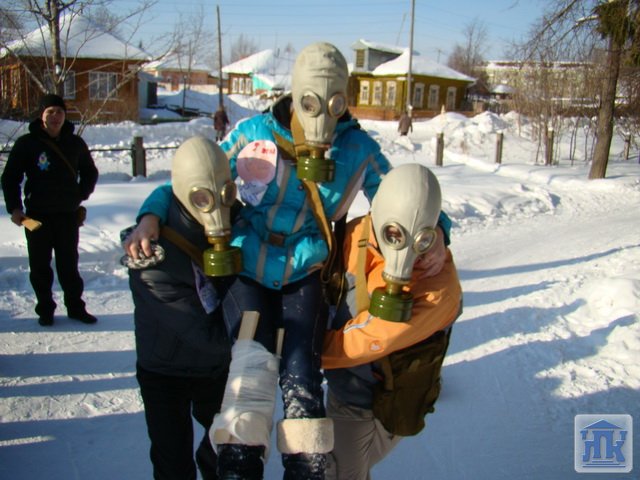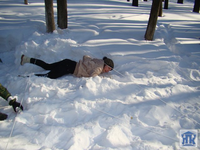 - бег на лыжах 1400 метров и доставка пострадавшего подручными методами