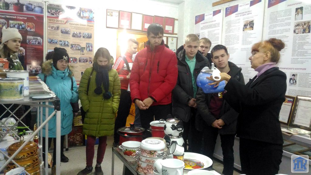 Экскурсию проводила Хамзина Галина Романовна, которая очень интересно рассказала ребятам об истории возникновения производства эмалированной посуды, о возрождении производства эмали в нашем городе, показывая различную посуду в музее. Затем ребята изучили технологические процессы нанесения эмали на стальную посуду, познакомились с такими методами как метод окунания и напыления. Экскурсия прошла очень интересно!