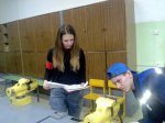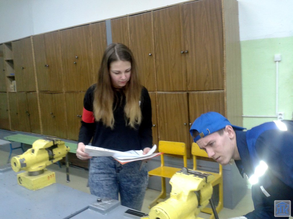 В ходе состязаний студенты показали профессиональные умения в токарном и слесарном деле. Участники конкурса работали в парах. Каждая пара конкурсантов готовилась к выполнению практического этапа конкурса: получали чертежи изделий, выбирали заготовки, определяли последовательность действий, подбирали необходимый инструмент. И вот практический этап – изготовление изделий; 1 часть выполнялась в токарном отделении, а 2 часть – в слесарном отделении. Члены жюри, студенты группы 27-16-УК, тщательно проверяли результаты практической части, оценивали выполненные изделия в соответствии с критериями практического этапа конкурса.