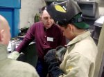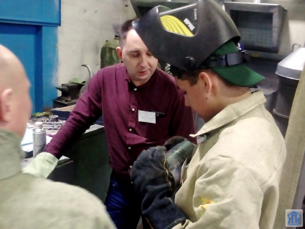 Все задания ребята выполняли самостоятельно. А сопровождающие их преподаватели, чтобы «не мешались под ногами», были отправлены на заседание РУМО «Технология материалов». Было много выступлений коллег и несколько мастер-классов, один из которых проводил мастер производственного обучения ГБПОУ «Лысьвенский политехнический колледж» Деветьяров Владимир Викторович. Он показывал нам особенности аргоно-дуговой сварки алюминия.