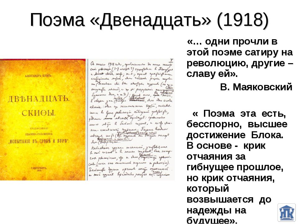 В январе 2018 года 100-летний юбилей поэмы Блока «Двенадцать».