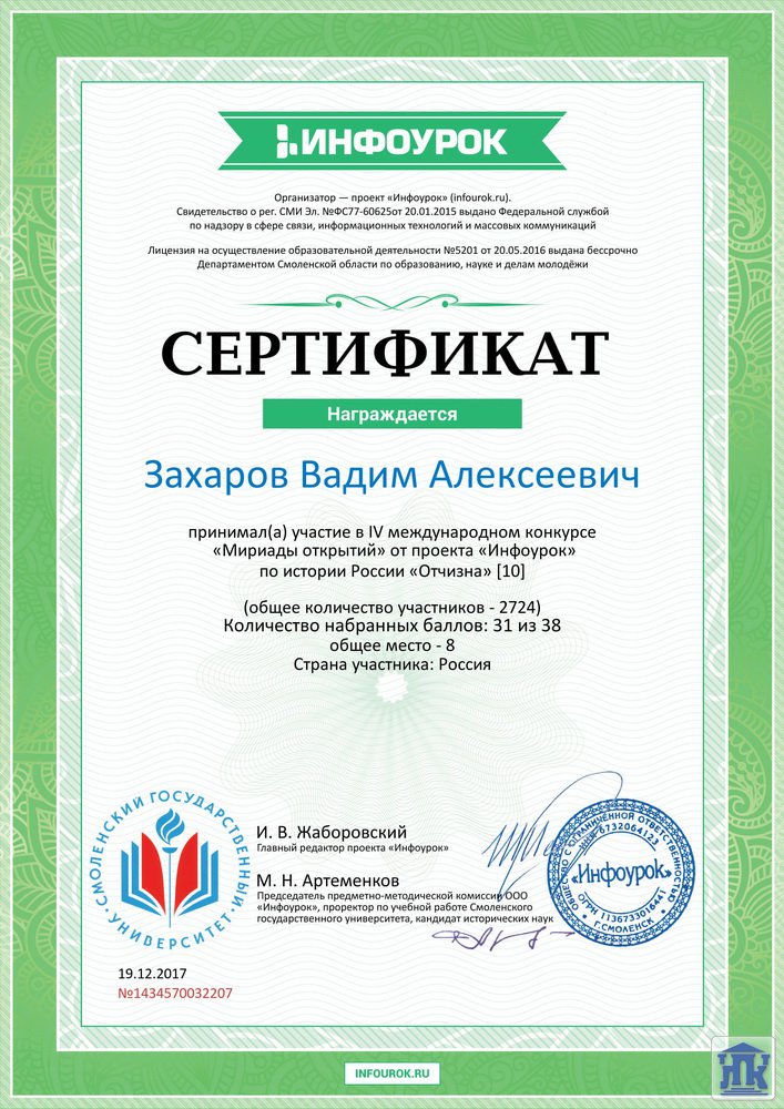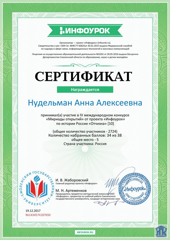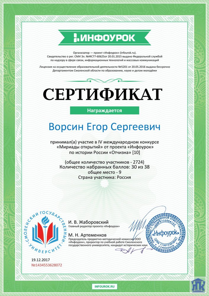 В декабре прошли массовые дистанционные олимпиады по различным дисциплинам. Проверялись знания математики, финансовой грамотности, интернет-безопасности, толерантности, истории России, всемирной истории, обществознания, иностранного языка, основ безопасности жизнедеятельности, физической культуры, экологии, биологии, географии, информатики, правоведения на порталах «КОНКУРС-СТАРТ», «ИНФОУРОК», «ВЕДКИ».