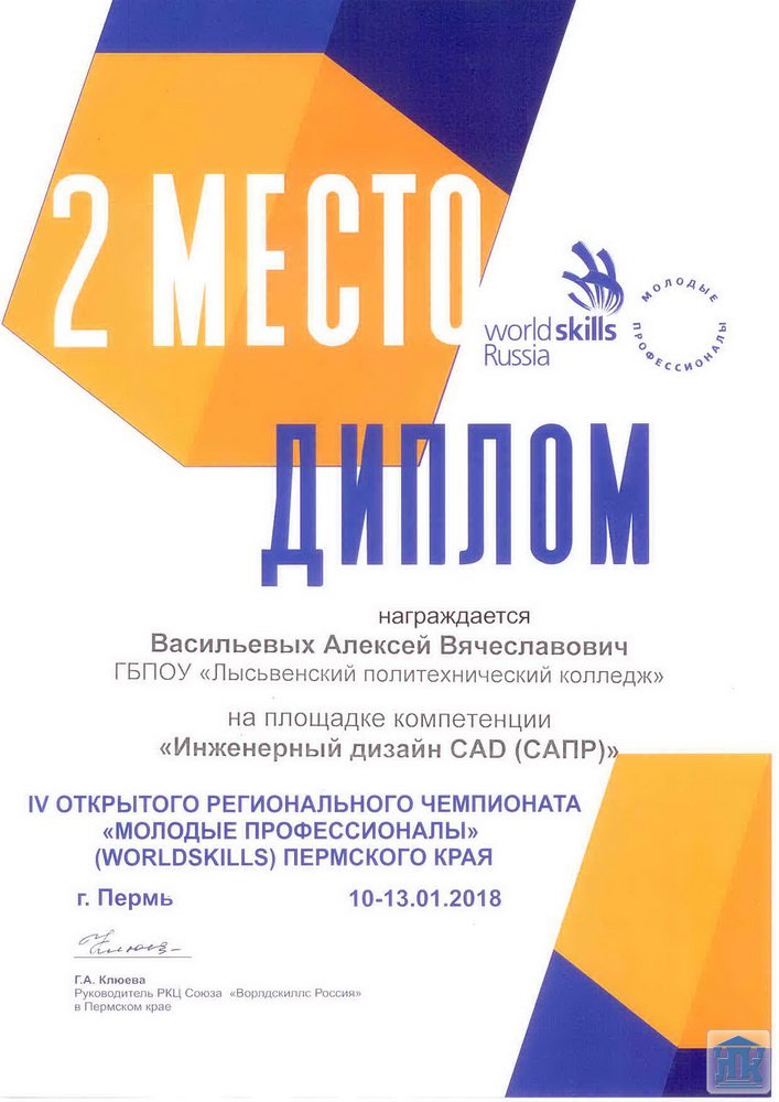 В компетенции «Инженерный дизайн CAD(САПР)» от нашего колледжа выступал студент группы 36-15-ТМ Васильевых Алексей, который занял 2 место!