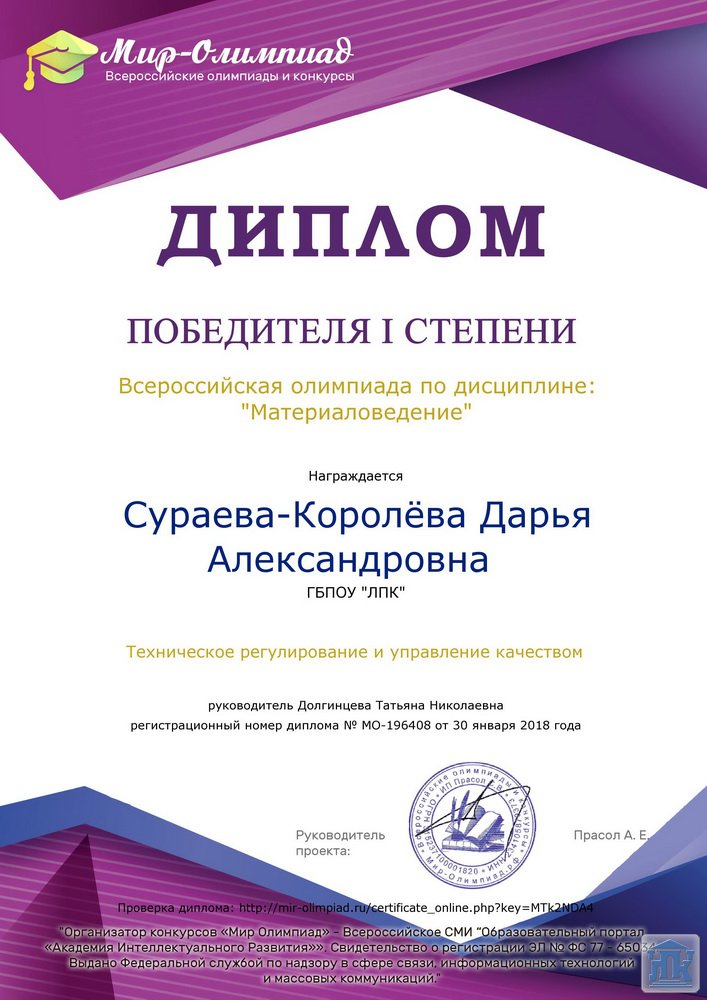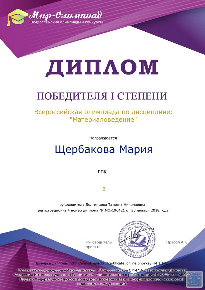 Студенты колледжа приняли активное участие во Всероссийской олимпиаде по дисциплине «Материаловедение» и получили заслуженно высокие баллы. Благодарю студентов за активное участие и желаю удачи и успехов в дальнейшей учебе!