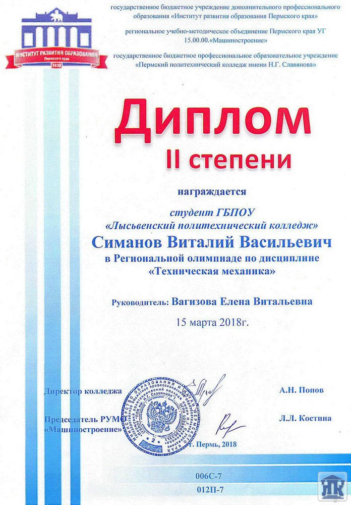 15 марта в ГБПОУ «Пермский политехнический колледж имени Н.Г.Славянова» прошла Региональная олимпиада по дисциплине «Техническая механика».