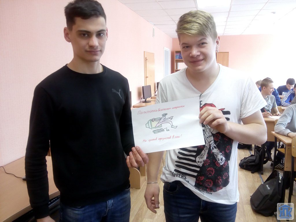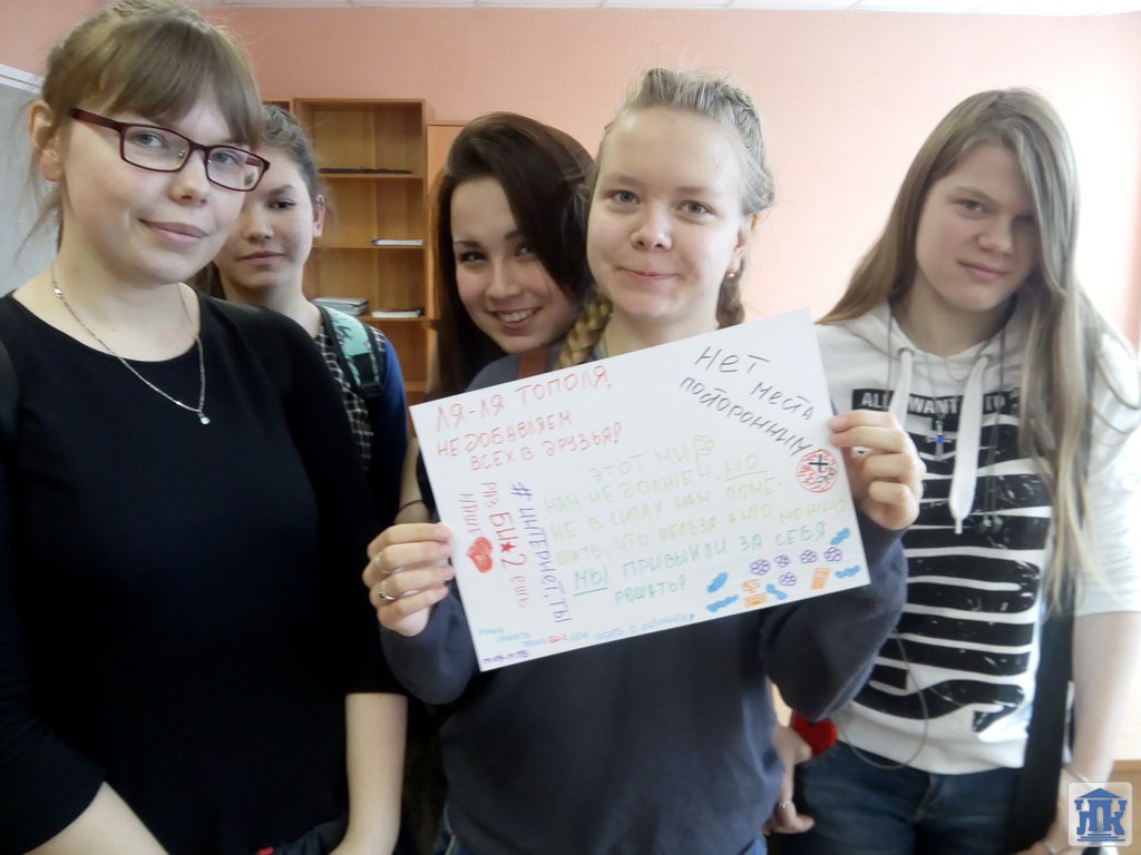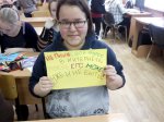 В конце урока участникам предложили придумать слоган, девиз или призыв, оформить его на бумаге (написать или нарисовать) и сделать фото.