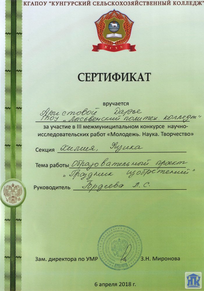 6 апреля состоялась III межмуниципальная научно-практическая конференция «Молодёжь. Наука. Творчество» на базе КГАПОУ «Кунгурский сельскохозяйственный колледж».