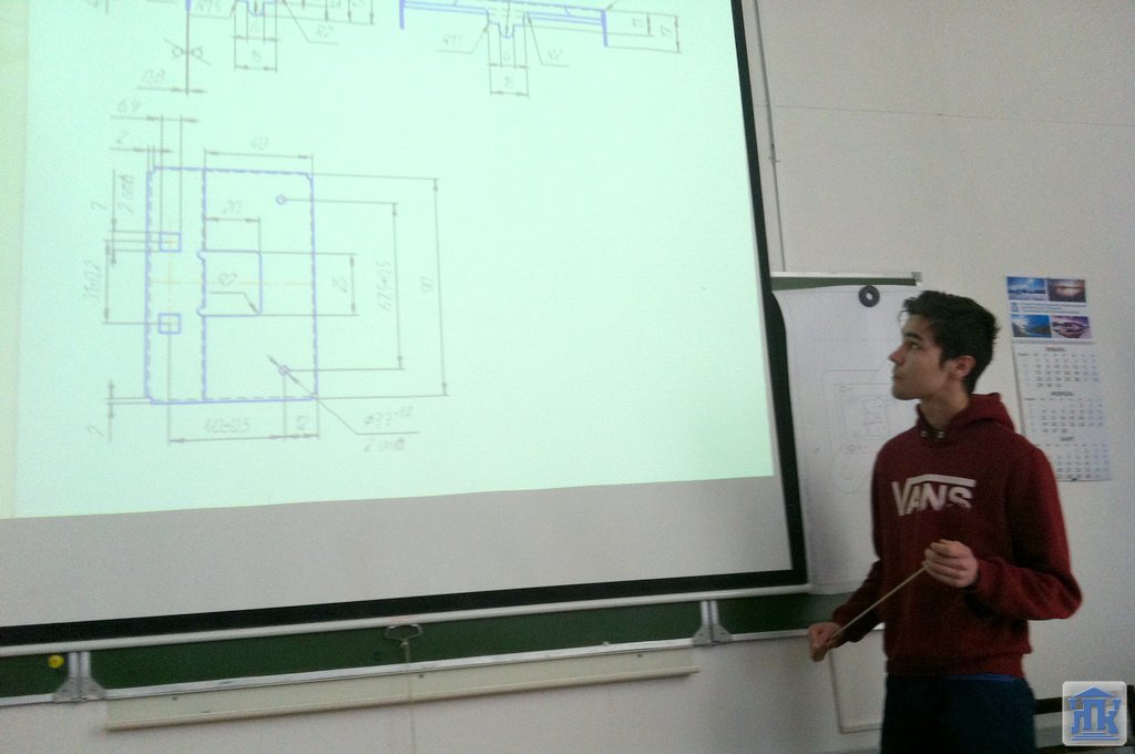 Для курсового проектирования 70% тем были взяты с производства. Из 20 человек все защитили курсовые проекты, средний балл – 4,05. Есть курсовые проекты, выполненные по заданию с предприятий с дальнейшей практической направленностью. Это тема у студента Мутовкина Тимофея «Проект технологического процесса изготовления детали «Кронштейн крепления конфорки» для производства ООО «Лысьвенский завод бытовой техники» и др.
