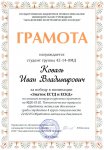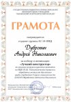 «Лучший технолог» – Абрамова В., Пунгина Д.; «Лучший конструктор» – Дубровин А.; «Лучший оратор и защитник проекта» – Татаринов К.; «Знаток ЕСТД и ЕСКД» – Коваль И., Двинских А.; «Практическая значимость» – Мутовкин Т.; «За волю к победе» – Косенко К., Вятчанин Е.